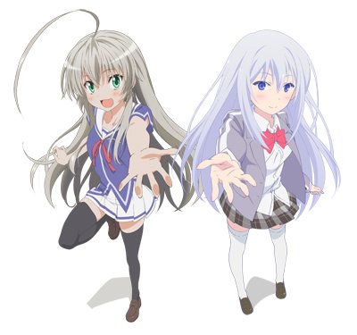 サイトでは描き下ろしのコラボイラストも発表!真涼とニャル子がお互いの制服を交換して並び立つイラストです。