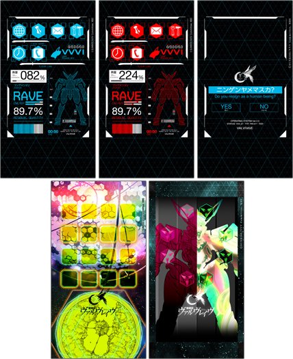 「革命機ヴァルヴレイヴ」では、ヴァルヴレイヴⅠのモニターやモジュール77などをモチーフした壁紙を全5種類が登場。「ニンゲンヤメマスカ?」も壁紙に設定できる!