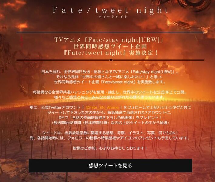 ◆世界同時感想ツイート企画『Fate/tweet night』◆