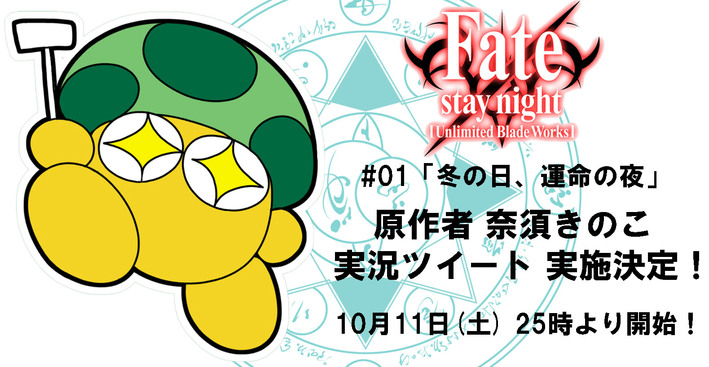 公式Twitterアカウント(@Fate_SN_Anime)にて、原作者・奈須きのこさんの実況ツイート実施決定!