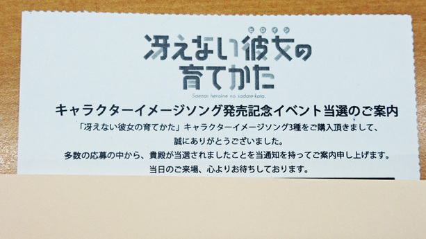 冴えない彼女の育てかた♭ / キャラクターイメージソングCD発売記念イベントの当選ハガキを発送開始しました 1月 28, 2015 2月15日開催のキャラクターイメージソングCD発売記念イベントの当選ハガキを1月27日より発送開始しました。当選された方には近日中に届くと思いますので、お楽しみに!■作品詳細ページ 共有 リンクを取得 Facebook × Pinterest メール 他のアプリ ラベル Aniplex saenai アニプレックス 冴えない彼女の育てかた♭ 共有 リンクを取得 Facebook × Pinterest メール 他のアプリ コメント