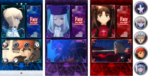 ホーム画面は凛&アーチャー、士郎&セイバー、イリヤ&バーサーカーの3パターンをご用意しました。