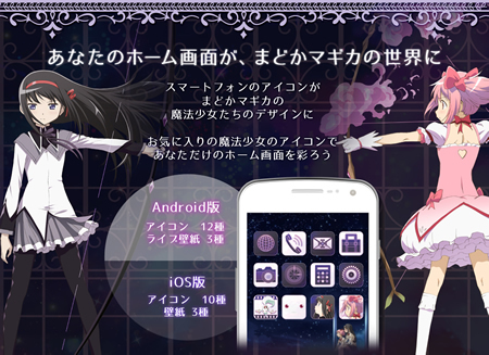 スマートフォンのアプリアイコンを「魔法少女まどか☆マギカ」の