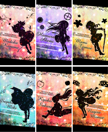 まどか、ほむら、マミ、さやか、杏子、なぎさをイメージした全6種類をご用意しました。