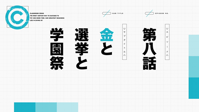 Classroom☆Crisis / 第8話「金と選挙と学園祭」あらすじ・場面写・予告映像公開! 8月 19, 2015 第8話「金と選挙と学園祭」のあらすじ・場面写・予告映像を公開いたしました。>STORYページ■作品詳細ページ 共有 リンクを取得 Facebook × Pinterest メール 他のアプリ ラベル Aniplex Classroom☆Crisis crc アニプレックス 共有 リンクを取得 Facebook × Pinterest メール 他のアプリ コメント