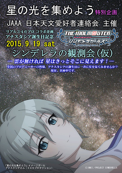 アイドルマスター シンデレラガールズ / リアル346プロ「日本天文愛好者連絡会(JAAA)」イメージガール起用決定! 8月 21, 2015 リアル346プロ企画として、日本天文愛好者連絡会(JAAA)様の「星の光を集めよう」イメージガールに、アナスタシアを起用頂きました。詳細はコチラ■作品詳細ページ 共有 リンクを取得 Facebook × Pinterest メール 他のアプリ ラベル Aniplex imas-cinderella アイドルマスター シンデレラガールズ アニプレックス 共有 リンクを取得 Facebook × Pinterest メール 他のアプリ コメント