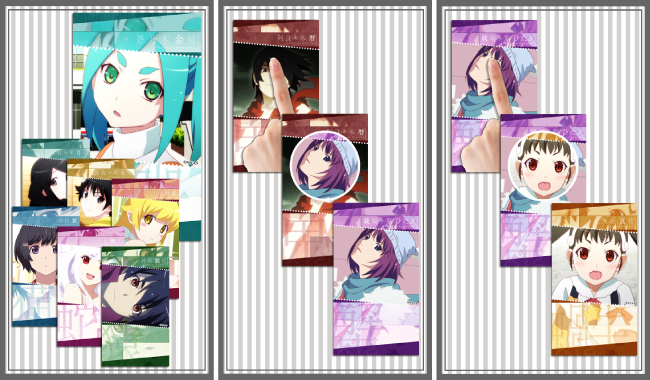 暦、ひたぎ、真宵、駿河、撫子、翼、忍、火憐、月火、余接の順にチェンジします!