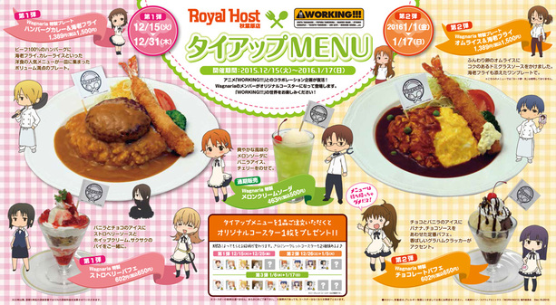 ロイヤルホスト秋葉原店にてコラボ企画が復活!「WORKING!!!」特製メニューが期間限定で登場します。