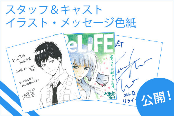 ReLIFE / スタッフ&キャストからのイラスト・メッセージ色紙公開! 4月 04, 2016 3/26、3/27に「AnimeJapan2016」のトムス・エンタテインメントブースにて展示されていたメインスタッフ&キャストからのイラスト・メッセージ色紙を公開しました!<<スペシャルページはこちら■作品詳細ページ 共有 リンクを取得 Facebook × Pinterest メール 他のアプリ ラベル Aniplex relife アニプレックス 共有 リンクを取得 Facebook × Pinterest メール 他のアプリ コメント