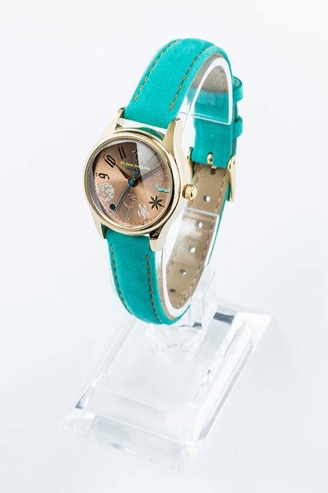 キングのイメージカラーであるグリーンのベルトに、フェイスはゴールドでカジュアルに寄りすぎない使いやすいデザインにしました。特に文字盤のデザインはこだわり、キングの武器である「霊槍シャスティフォル」を形態別にあしらいました。ベルトのステッチは、キングのフードの色と同じイエローを使い、細部までキングらしさを表現しています。色使いやこだわりがたっぷりつまった腕時計はカジュアルな服だけでなく、シンプルなコーデのアクセント使いにぴったり○