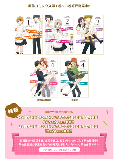 WWW.WORKING!! / YGC『WEB版WORKING!!』4巻9月24日、5巻12月24日発売予定! 4月 02, 2016 YGC『WEB版WORKING!!』4巻9月24日、5巻12月24日発売予定!4巻5巻共に〝録りおろしドラマCD付き〟初回限定特装版も同時発売!全国各書店、各ネットショップにて随時予約開始!■作品詳細ページ 共有 リンクを取得 Facebook × Pinterest メール 他のアプリ ラベル Aniplex www-working WWW.WORKING!! アニプレックス 共有 リンクを取得 Facebook × Pinterest メール 他のアプリ コメント