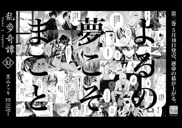 乱歩奇譚 Game of Laplace / 乱歩奇譚コミカライズ「乱歩奇譚 Game of Laplace 幻」発売カウントダウン 5月 05, 2016 2巻発売まで、2週間を切りました!!サイト未掲載の10話「白昼夢」のカットも交えたコミカライズ広告が到着。黒山メッキ先生が描く鮮烈なる幻、ほんの少しだけですがお楽しみください!■作品詳細ページ 共有 リンクを取得 Facebook × Pinterest メール 他のアプリ ラベル Aniplex ranpokitan アニプレックス 乱歩奇譚 Game of Laplace 共有 リンクを取得 Facebook × Pinterest メール 他のアプリ コメント