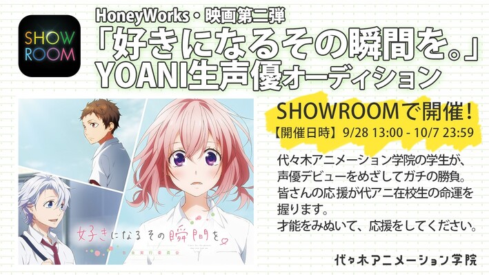好きになるその瞬間を。声優オーディションSHOWROOMイベントページ