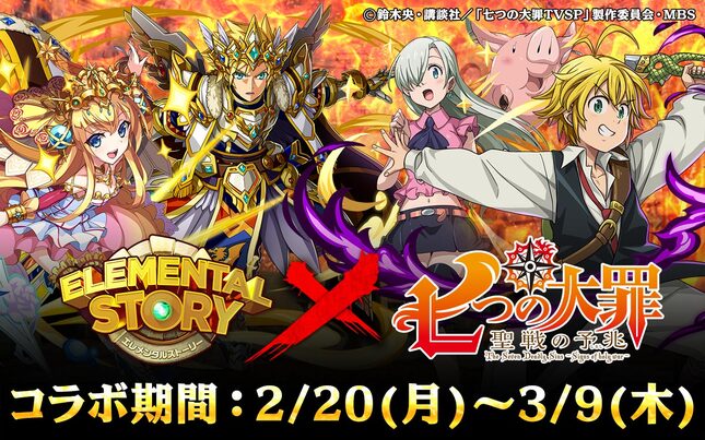 『七つの大罪 聖戦の予兆』と、共闘対戦 爽快パズル消しゲー『エレメンタルストーリー』とのコラボがスタートしました!