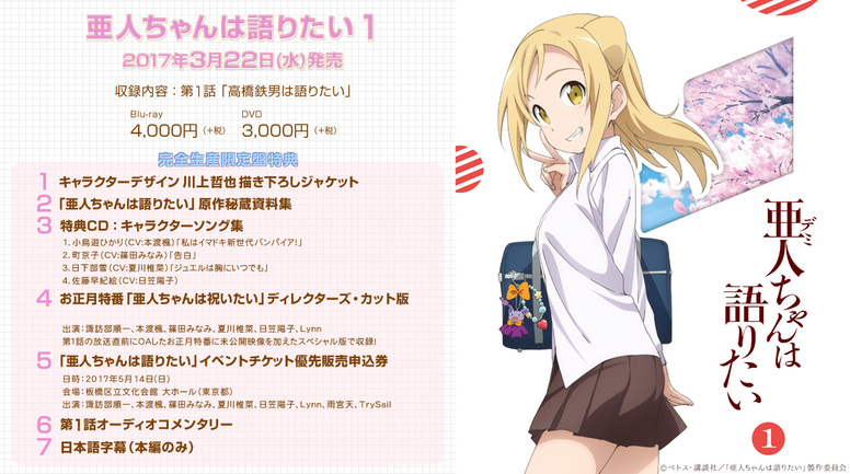 亜人ちゃんは語りたい / Blu-ray&DVD第1巻 ジャケットデザイン公開! 2月 19, 2017 3月22日(水)発売『亜人ちゃんは語りたい』Blu-ray&DVD第1巻のジャケットデザインを公開!キャラクターデザイン・川上哲也描き下ろしのひかりが登場!ただいまご予約受付中です!Blu-ray&DVD第1巻はこちら■作品詳細ページ 共有 リンクを取得 Facebook × Pinterest メール 他のアプリ ラベル Aniplex demichan アニプレックス 亜人ちゃんは語りたい 共有 リンクを取得 Facebook × Pinterest メール 他のアプリ コメント