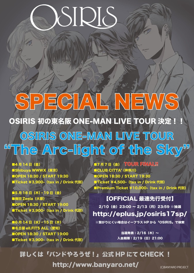 【OSIRIS東名阪ワンマンツアー!OFFICIAL2次先行受付開始決定!】