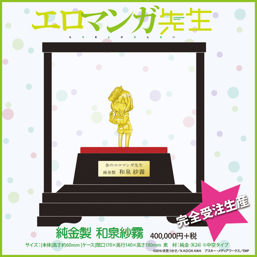 エロマンガ先生 / ”金のエロマンガ先生”販売決定! 3月 26, 2017 オフィシャルパートナー企画でコラボが実現した(株)中外鉱業様との共同制作にて「金のエロマンガ先生」の制作が決定!お値段なんと400,000円(税抜)!!!商品サンプルも完成いたしました。完全受注生産ですのでお見逃しなく!詳しくはこちら■作品詳細ページ 共有 リンクを取得 Facebook × Pinterest メール 他のアプリ ラベル Aniplex eromanga アニプレックス エロマンガ先生 共有 リンクを取得 Facebook × Pinterest メール 他のアプリ コメント