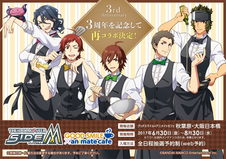 『アイドルマスター SideM』の3周年を記念して、アニメイトカフェとのコラボが決定!