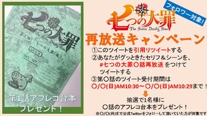 ①公式Twitterよりツイートされる、下記の【七つの大罪再放送キャンペーン開始!】のツイートを引用リツイート※写真の台本は例です