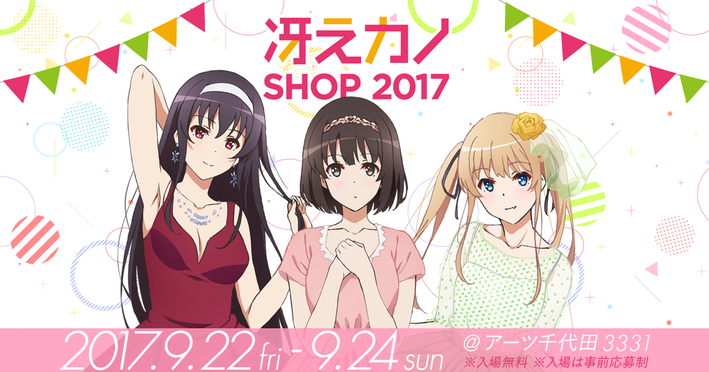 9月22日(金)~24日(日)まで秋葉原・アーツ千代田3331にて開催の「冴えカノSHOP2017」ですが、お時間帯により追加応募の実施が決定しました!