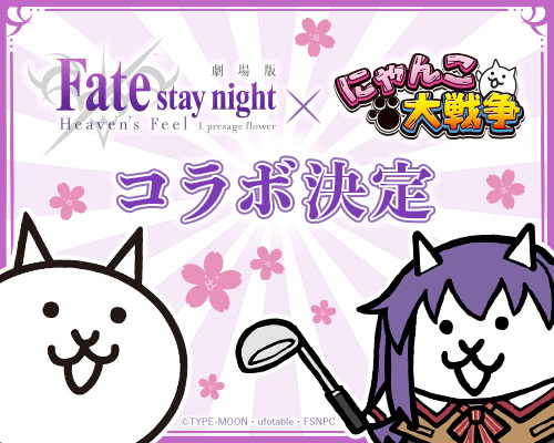 Fate/stay night / 劇場版「Fate/stay night [Heaven's Feel]」×「にゃんこ大戦争」コラボレーション決定!コラボ限定キャラ「ちび桜」が手に入る事前SNSキャンペーンがスタート!