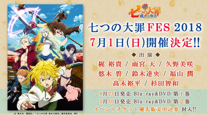 七つの大罪 戒めの復活 / 7月1日(日)「七つの大罪FES 2018」開催決定!豪華キャスト出演! 1月 13, 2018 2018年7月1日(日)に今年で4日目となる「七つの大罪FES 2018」の開催が決定しました!4月25日(水)発売Blu-ray&DVD第1巻、5月30日(水)発売Blu-ray&DVD第2巻にイベントチケット優先販売申込券が封入されます!◆七つの大罪FES 2018◆開催日:7月1日(日)出演者:梶裕貴、雨宮天、久野美咲、悠木碧、鈴木達央、福山潤、髙木裕平、杉田智和※場所、時間等の詳細は後日発表致します。パッケージ情報はこちら■作品詳細ページ 共有 リンクを取得 Facebook × Pinterest メール 他のアプリ ラベル 7taizai_tv2nd Aniplex アニプレックス 七つの大罪 戒めの復活 共有 リンクを取得 Facebook × Pinterest メール 他のアプリ コメント