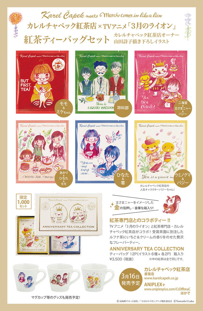 TVアニメ「3月のライオン」と紅茶専門店・カレルチャペック紅茶店とのコラボ商品が3月16日に発売します。