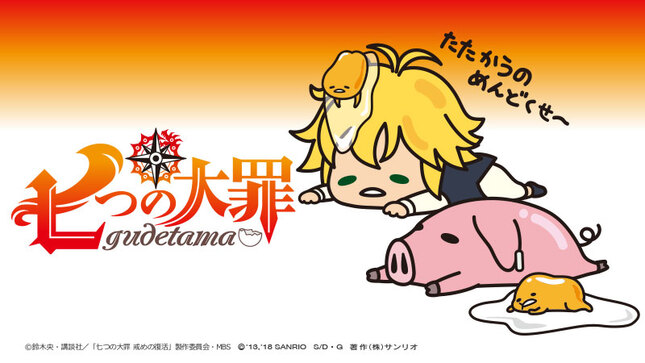 「七つの大罪」と「ぐでたま」のコラボレーション商品シリーズ「ぐでたま×七つの大罪」のコラボ展開が決定です!今回のコラボは、伝説の騎士団である〈七つの大罪〉のメンバーが、「ぐでたま」とのコラボにより「戦うのがめんどくさくなった…」というコンセプトのもと、それぞれのキャラクターたちが「ぐでたま」とコラボレーションしているイラストをサンリオが制作し、2018年6月より雑貨、アパレル、文具等の商品が発売されていく予定です。